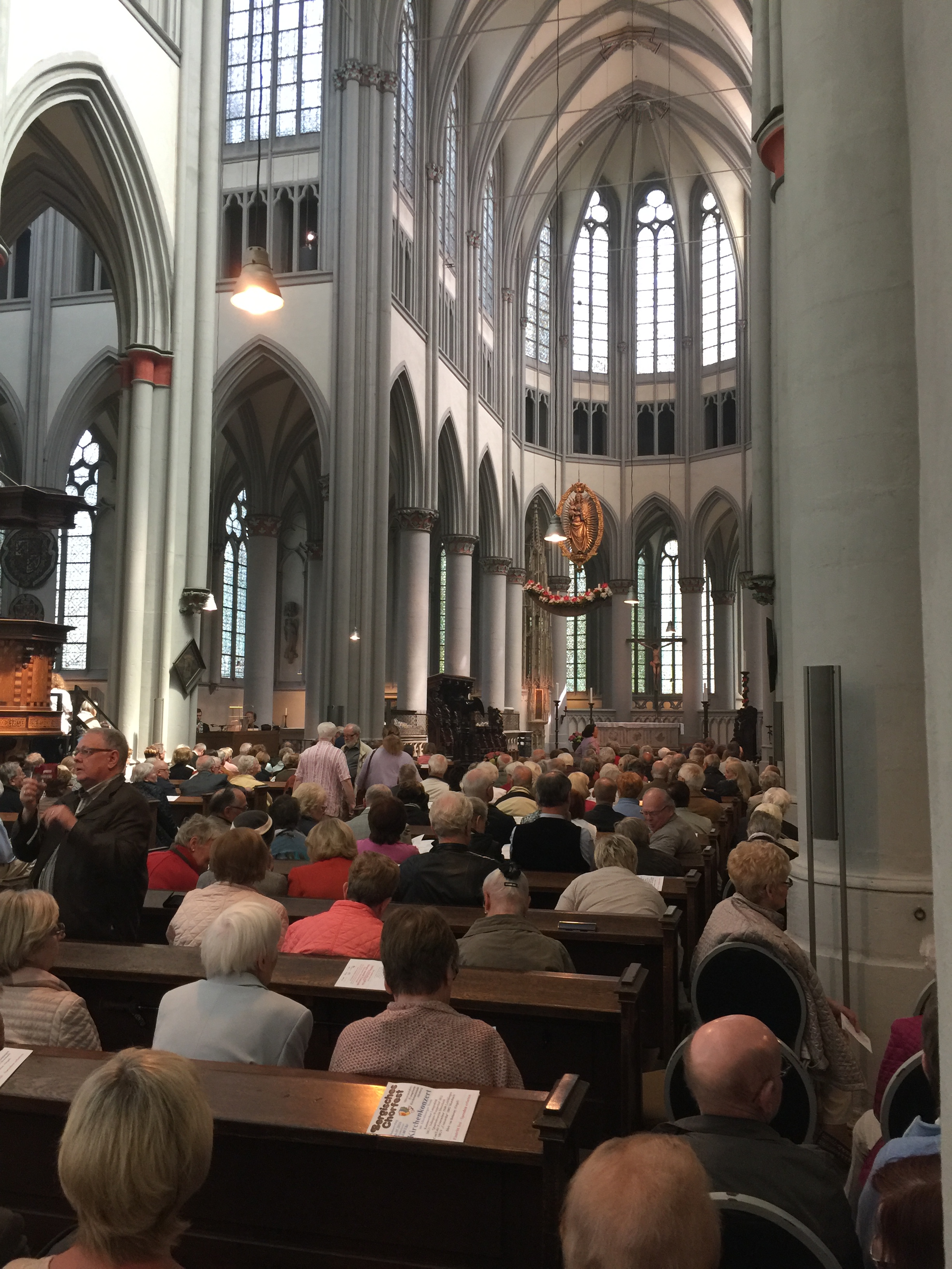 Wieder einmal hatte Chorleiter Hubertus Schönauer den Chor auf diesen wichtigen Auftritt optimal vorbereitet und mit der Liedauswahl auch voll den Geschmack der Zuhörer getroffen. Schon beim Vortrag des ersten Liedes „Kyrie“ (Herr erbarme dich) von Piotr Janc`zak spürte man die Aufmerksamkeit und Begeisterung des Publikums, die sich auch später in dem spontanes Applaus voll wieder spiegelte. Während bei diesem Lied mehr Wert auf den rhythmischen Ausdruck gelegt wurde, kam beim „Lobgesang“ im Satz von Jürgen Rinkel überwiegend das getragene Piano zur Geltung. Schließlich brachte die „Concordia“ noch „Soon Ah Will Be Done“ von W. L. Davson zum Vortrag. Der Schlusschor „Sagt allen Völkern“ von Merill Dunlop in der Bearbeitung J. Speitmann wurde von Dr. Dirk van Betteray an der Domorgel begleitet.
