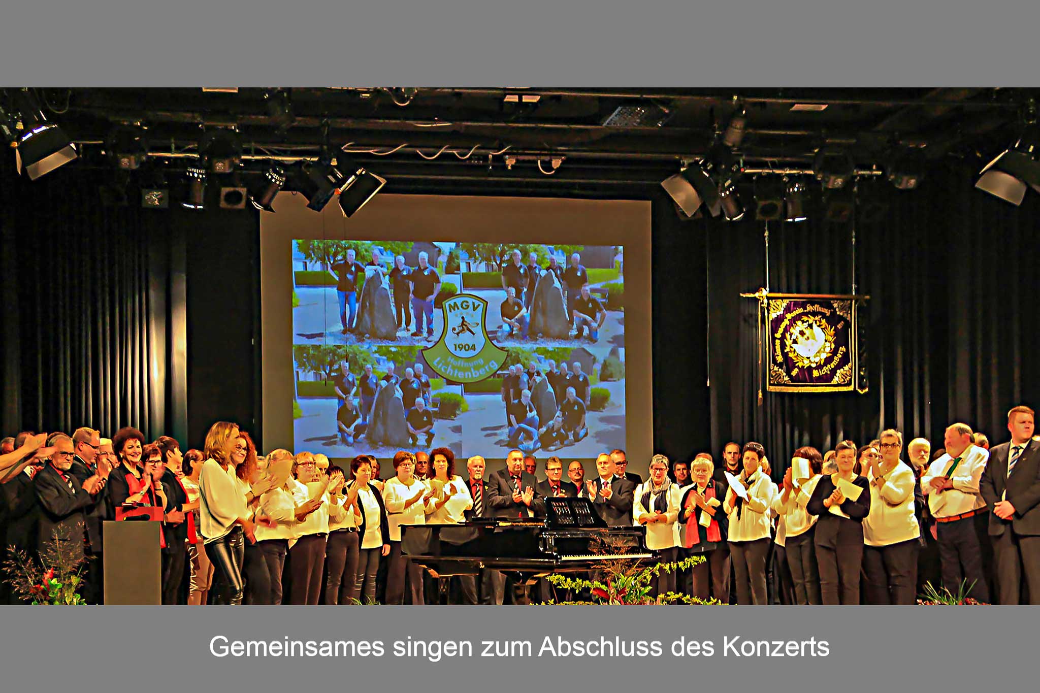 Am 12.10.19 beteiligten wir uns an dem Konzert zum 115.Bestehen des MGV Hoffnung Lichtenberg. Der Chorleiter des MGV Lichtenberg, Konrad Ossig, hatte sich bereit erklärt uns bei diesem Anlass zu dirigieren. Nach einem kurzen ansingen zum kennenlernen hatten wir unseren Auftritt, den wir trotz des nicht gewohnten Chorleiters mit Bravour ausgeführt haben. Der MGV Hoffnung Lichtenberg hatte sich zum Abschluss des Jubiläumskonzerts etwas besonderes ausgedacht, alle Chöre sollten gemeinsam am Ende des Konzerts ein Lied singen. Dieses Lied war von Konrad Ossig extra für diesen Anlass gesetzt worden und wurde in Pausen des Konzerts mit den verschiedenen Stimmen einstudiert. So kam es das am Ende des Konzerts ca. 150 Sängerinnen und Sänger das Lied „Die Blümelein sie schlafen“ gemeinsam Sangen.
